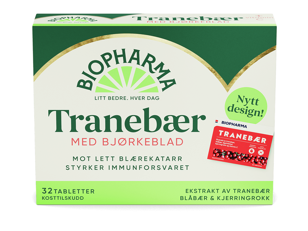 Biopharma Tranebær er et kosttilskudd med ekstrakt av tranebær, blåbær, bjørkeblad og kjerringrokk. Både bjørkeblad og kjerringrokk er