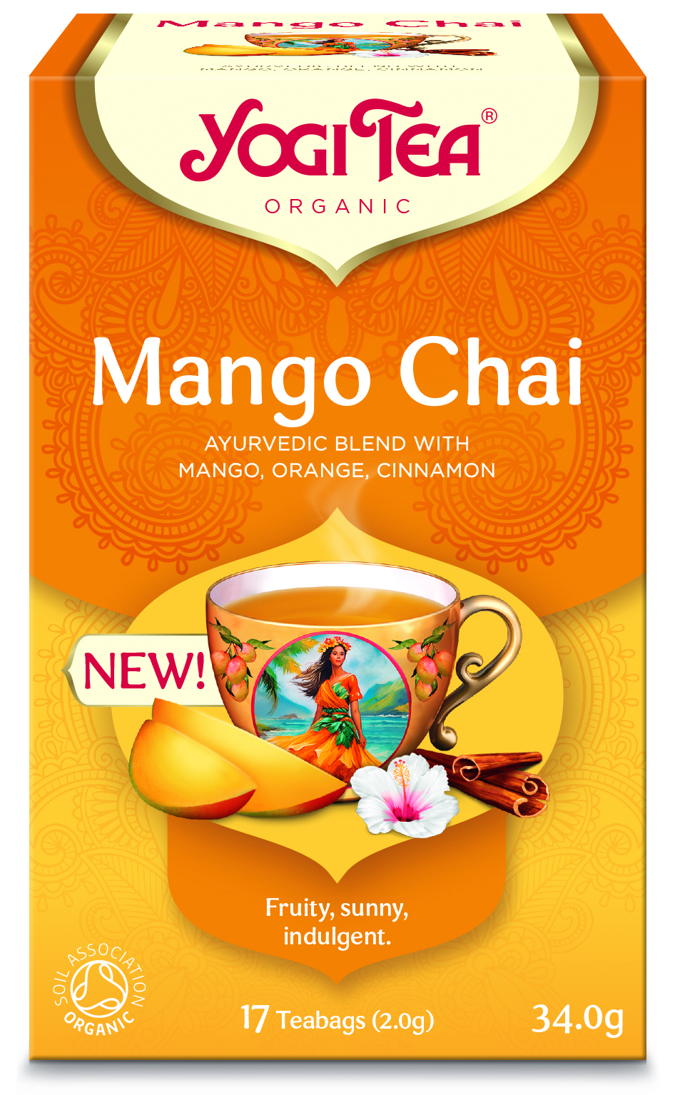 Tilfredsstill sansene dine med en kombinasjon av klassiske chai-krydder sammen med solrik søt mango og appelsin. Yogi Mango Chai tar deg med på en eksotisk reise!